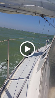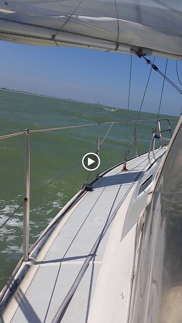 Oostende nadert, the "big city" ๐๐ de wind doet er nog een schepje bovenop. 2e rif dus. Oef! We vliegen...... veel tijd en goesting om eten te maken is er niet. Een boterham met Salami dan maar. Ik voel me goed ondanks de deining.